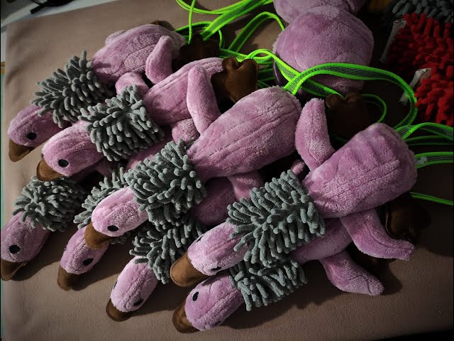 Утка игрушка для собаки изготовлена из плюша прошита на двусторонний флис, лапы, клюв, глаза из кожи. Внутри пищалка, крылья шуршат